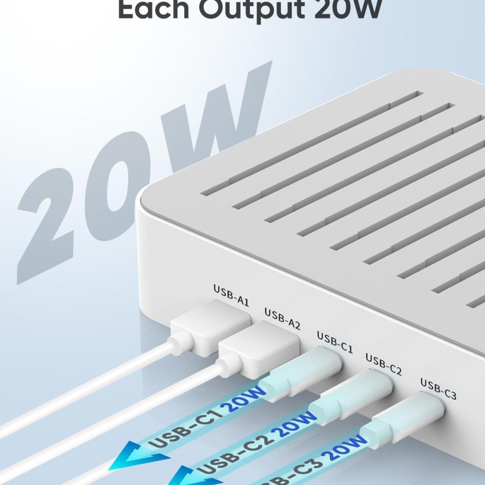 Introducing the MSTJRY USB C Charging Station – the ultimate solution for all your charging needs! Say goodbye to cluttered countertops and tangled cords with this sleek and efficient charging dock organizer. With 90W of power distributed across 5 ports, you can simultaneously charge your iPhone, iPad, tablets, phone, and even AirPods at lightning speed….